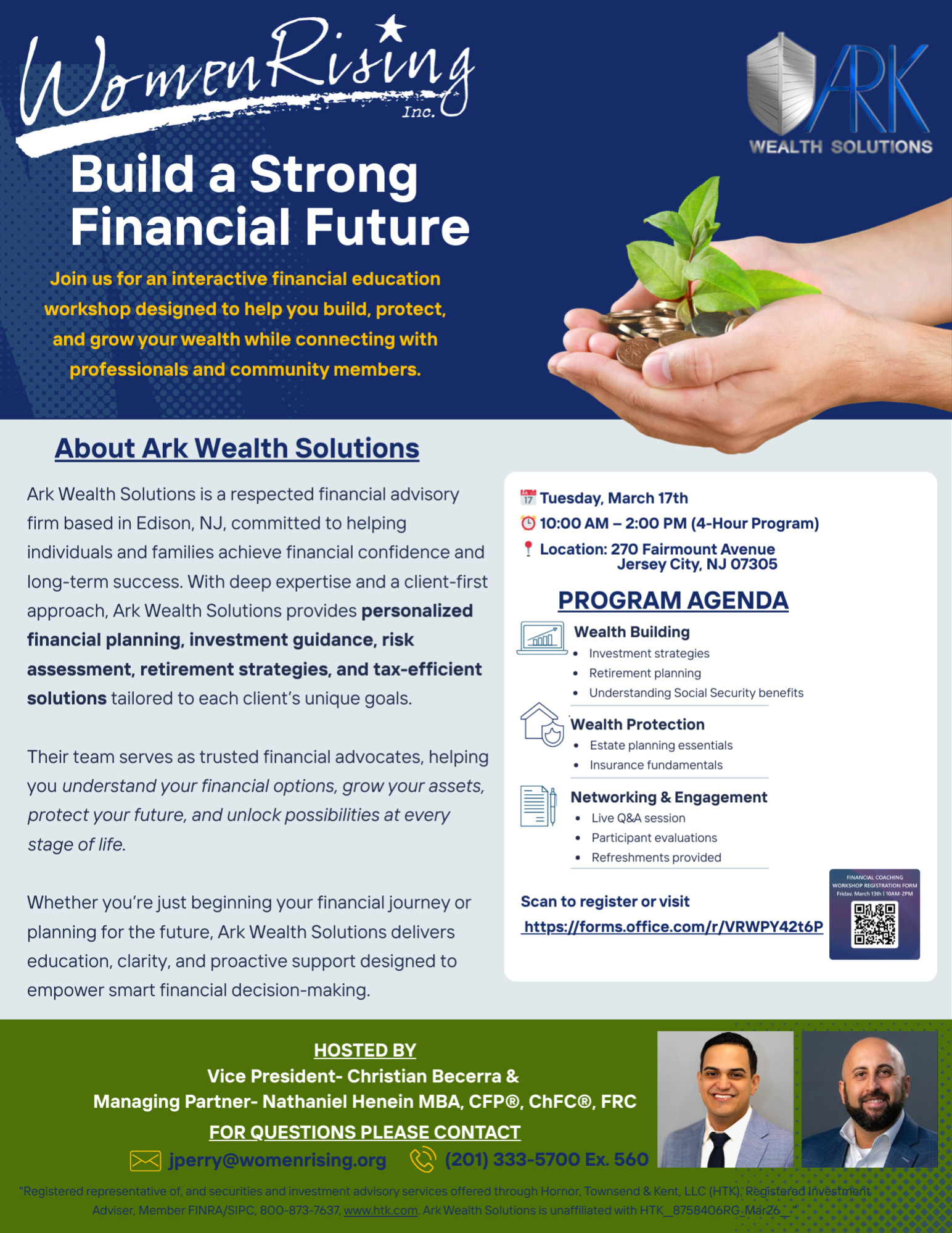 Join Women Rising for an interactive financial education workshop designed to help you build, protect, and grow your wealth while connecting with professionals and community members.