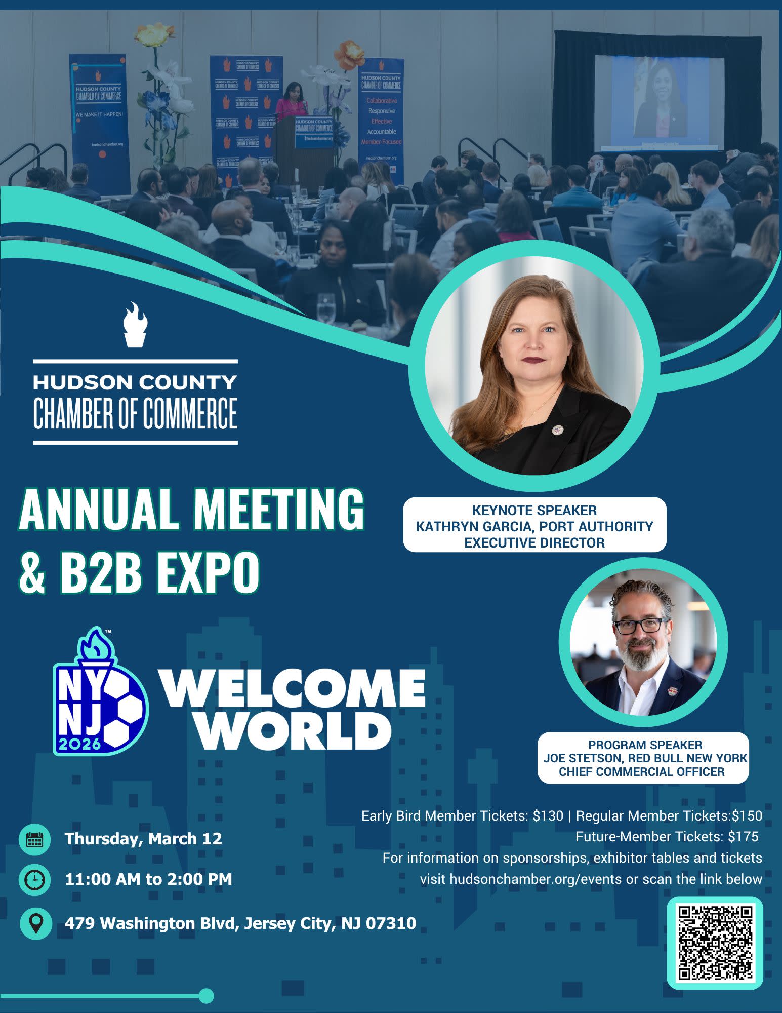 Brand visibility matters. Our B2B Expo drives business growth, builds strategic partnerships and generates high quality leads in a concentrated environment. Showcase your company, products or services, make valuable connections, and increase your visibility within the Hudson County business community - all in one place. Open doors to sales, new clients, market intelligence, and partnerships. Put a face to a name to strengthen credibility and foster personal trust. It’s a chance to stay informed, engaged, and involved with the Chamber’s vision for the year ahead.